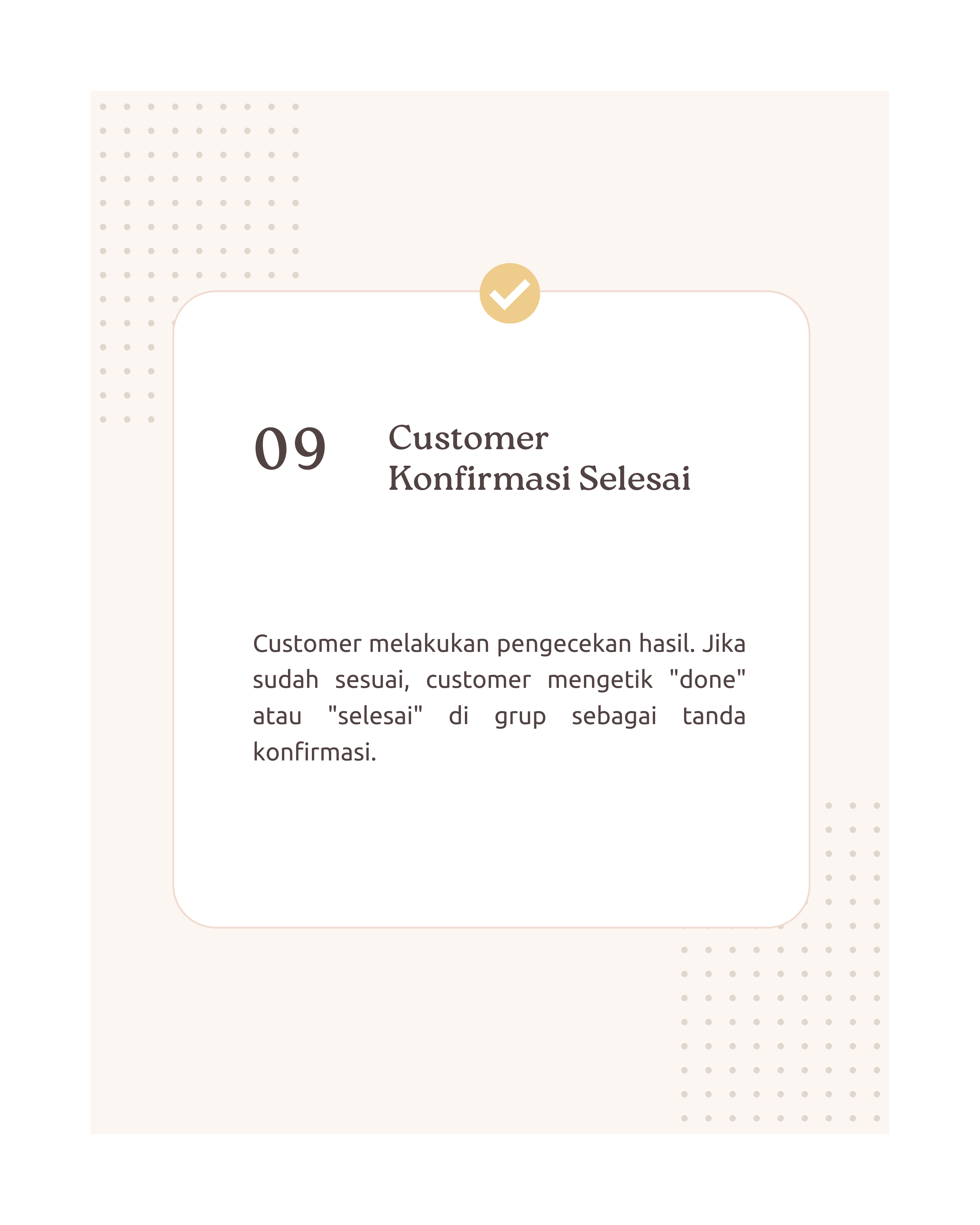 Tugas yang dikirim melebihi batas waktu (deadline) akan otomatis dianggap batal, kecuali ada perpanjangan waktu yang diberikan oleh customer.