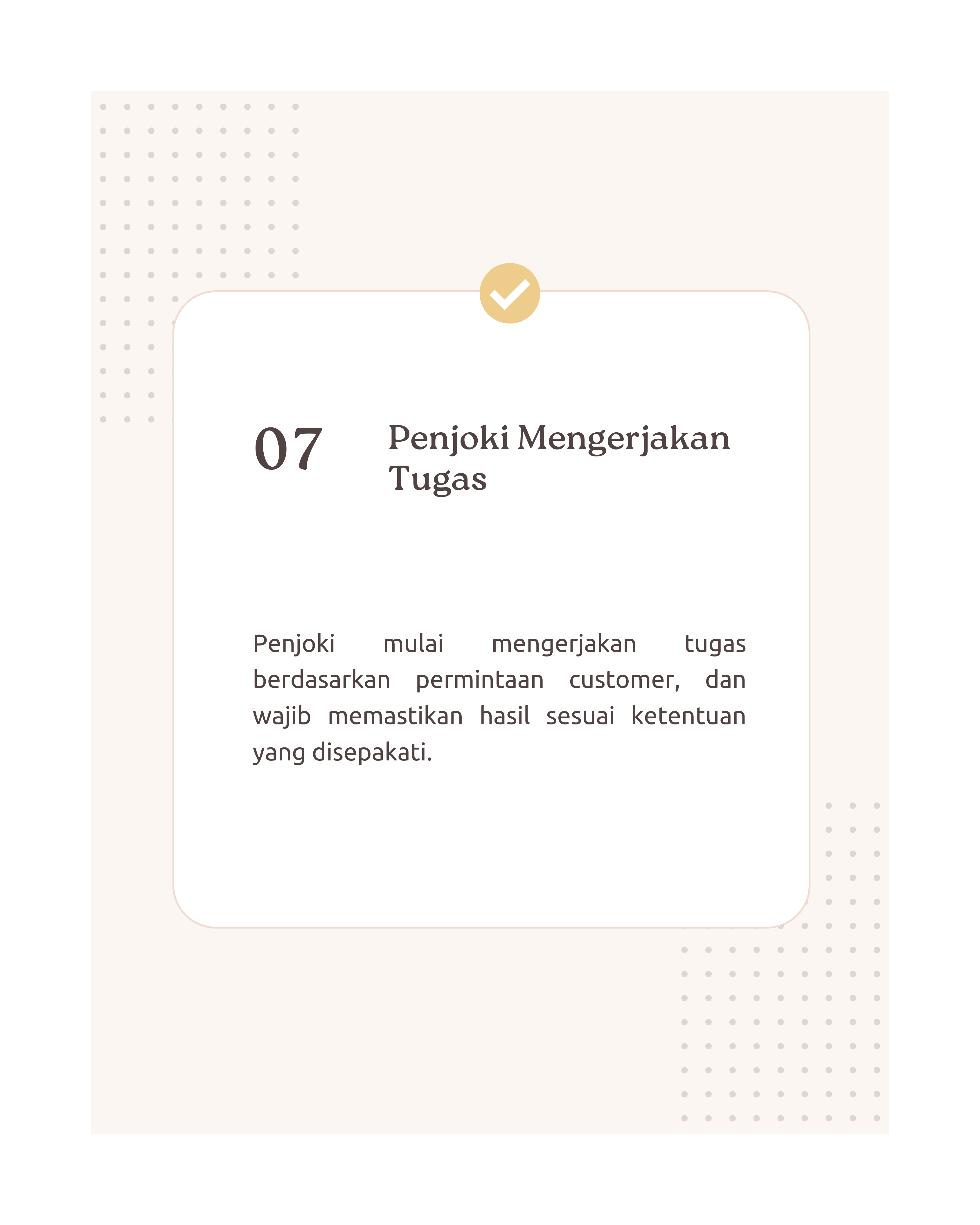 Setiap perubahan ketentuan tugas wajib dikonfirmasi kepada admin, kecuali jika customer dan penjoki telah sepakat di ruang chat masing-masing.